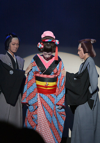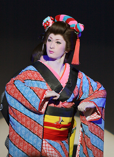 普段の女形の時よりも美しかったと思います。顔・衣装・演技と三拍子揃っていましたよね~もう素晴らしいの一言!!