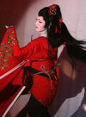 赤い着物に金の模様が入っていて、キセルを持っていて遊女風。鬘は写真で見たのとは違う、黒い垂らし髪。はうぅ~かわゆい。えろかわゆい。