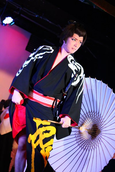 白い王子な美麗さんと、黄色い着物の女形の虎ちゃん。