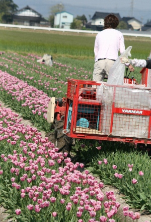 実家の周りのチューリップ畑。球根を収穫するための畑です。